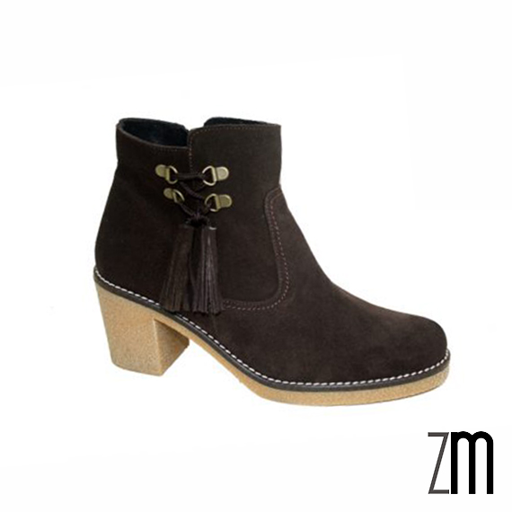 Botín mujer afelpado. Unos botines muy juveniles afelpados. Estos botines no pasan de moda se lleva temporada tras temporada, es atemporal, con un corte muy actual, El material exterior es serraje, el forro interior es textil y la piso de crepelina con adornos de borlas en el lateral, el cierre es con cremallera. Unos botines de la temporada otoño invierno 2019 – 2020. Fabricación española.
