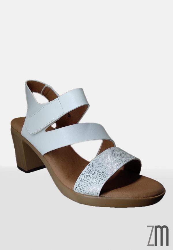 Sandalia con tacón, picada con planta de gel super-confort. Calzado de importación.