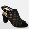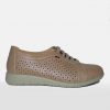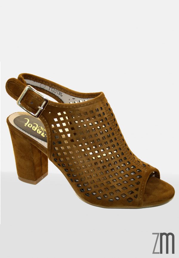 Sandalia de señora perforada en color camel, tacón forrado. Calzado de importación.