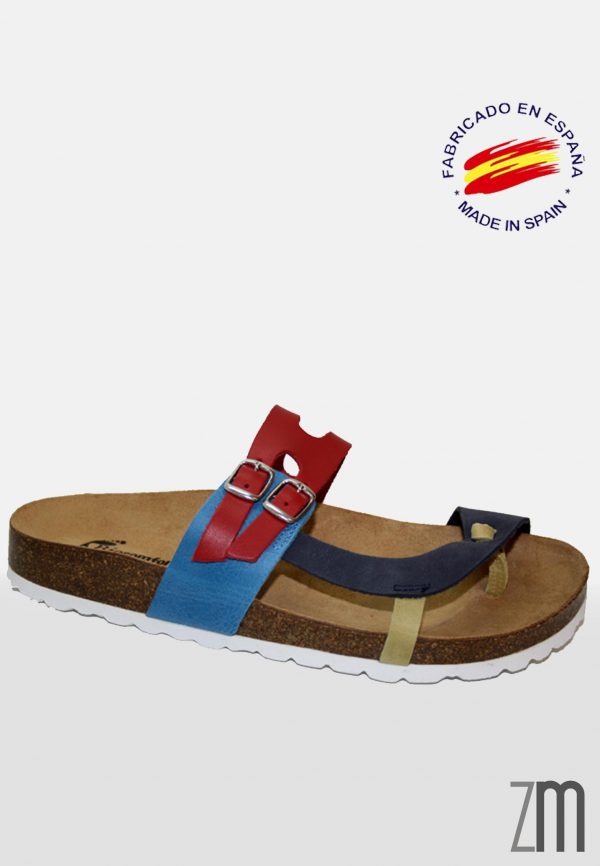 Sandalia Lune bioconfort en color multi azul y rojo, plantilla de gel. Cómoda y ligera. Calzado nacional.