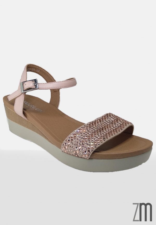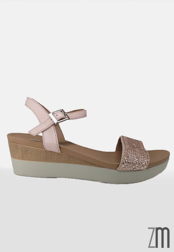 Sandalia con cuña de 6 cm de alto de poco peso y plantilla blanda y muy cómoda. Calzado de importación.
