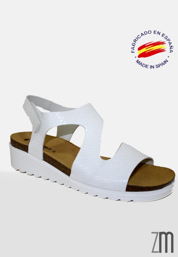 Sandalia biocomfort pitón blanco, hecho en españa.