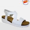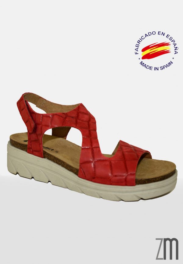 Sandalia biocomfort con grabado de pitón rojo, hecho en españa.
