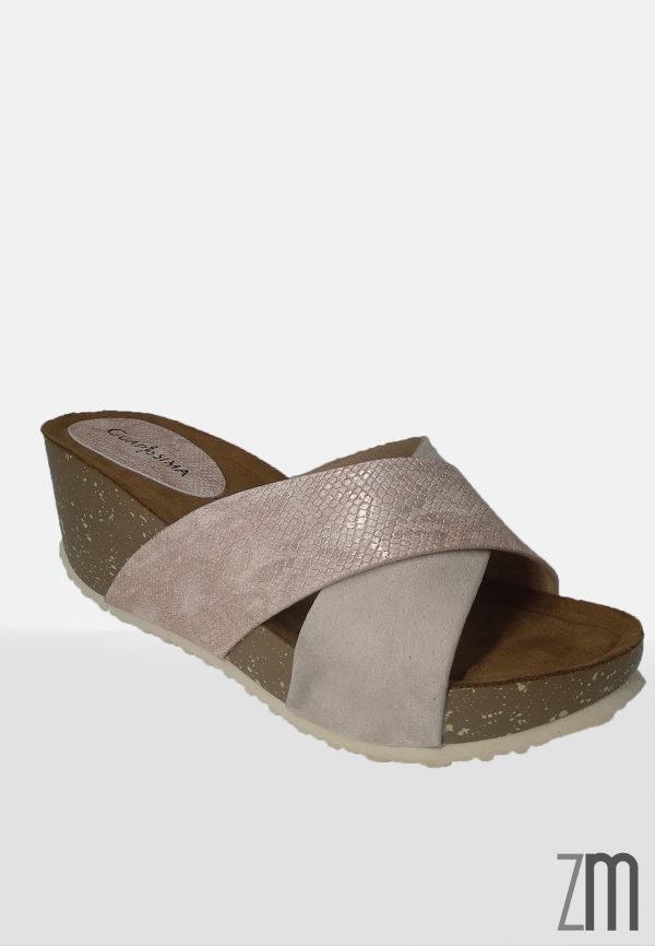 Sandalia con una cuña de 7 cm de altura y una plataforma de 3 cm. Blanda y ligera perfecta para el verano. Calzado de importación.