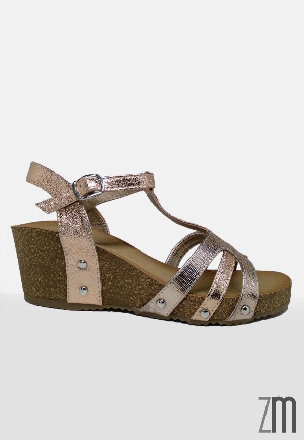 Sandalia ligera y cómoda de color nude brillante. Calzado de importación.