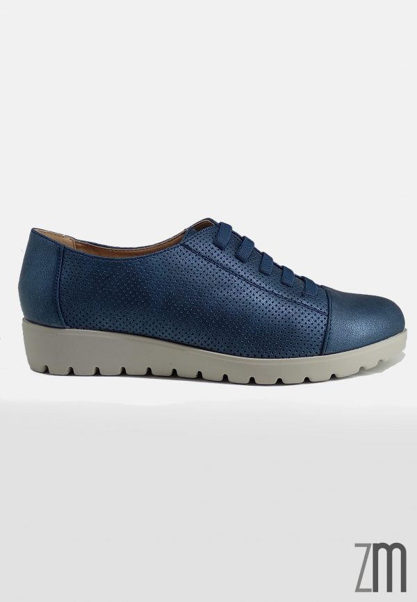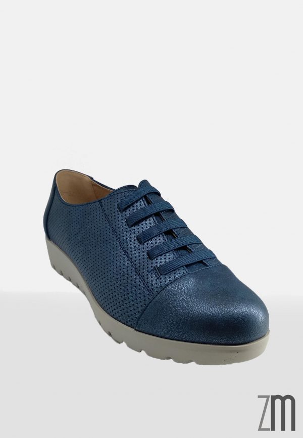Zapato con cordoneras elásticas de color azul marino.